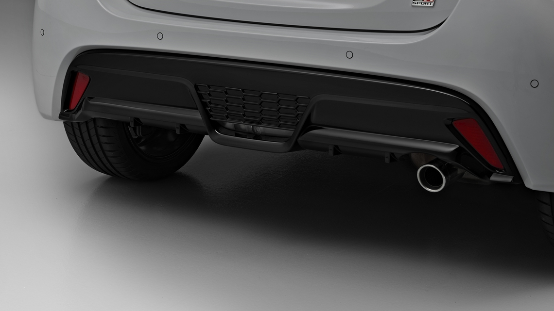 De Toyota Yaris GR Sport wordt geleverd in de nieuwe carrosseriekleur Dynamic Grey met zwarte accenten. Deze kleur is exclusief ontwikkeld voor de Yaris GR Sport en vormt een fraaie combinatie met de 18-inch lichtmetalen wielen met rode accenten. De grille wordt gekenmerkt door het ‘mesh’-materiaal met daarin een duidelijk G-motief verwerkt. Aan de achterzijde wordt de krachtige uitstraling versterkt door de T-vormige diffuser.
